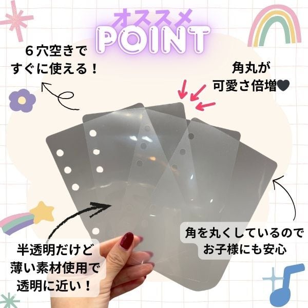 【素材】PP /6穴空き/角丸/厚み0.15mm