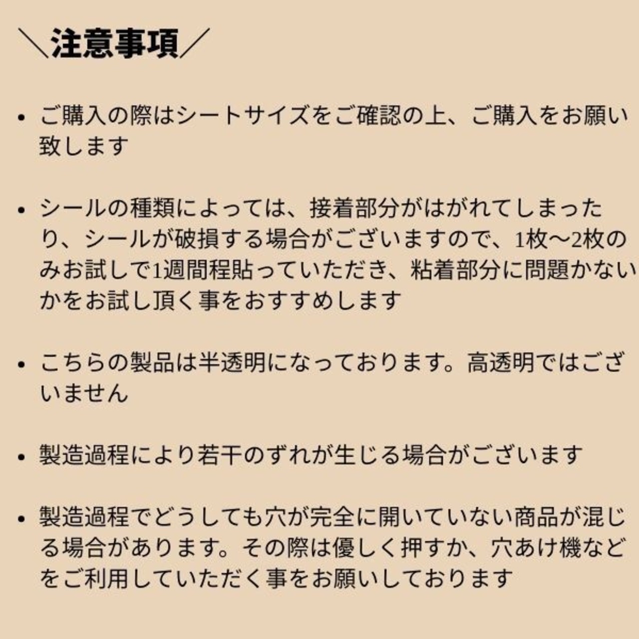 一部のシールでは、剥がれや、破れ等が出る場合がごさいます。